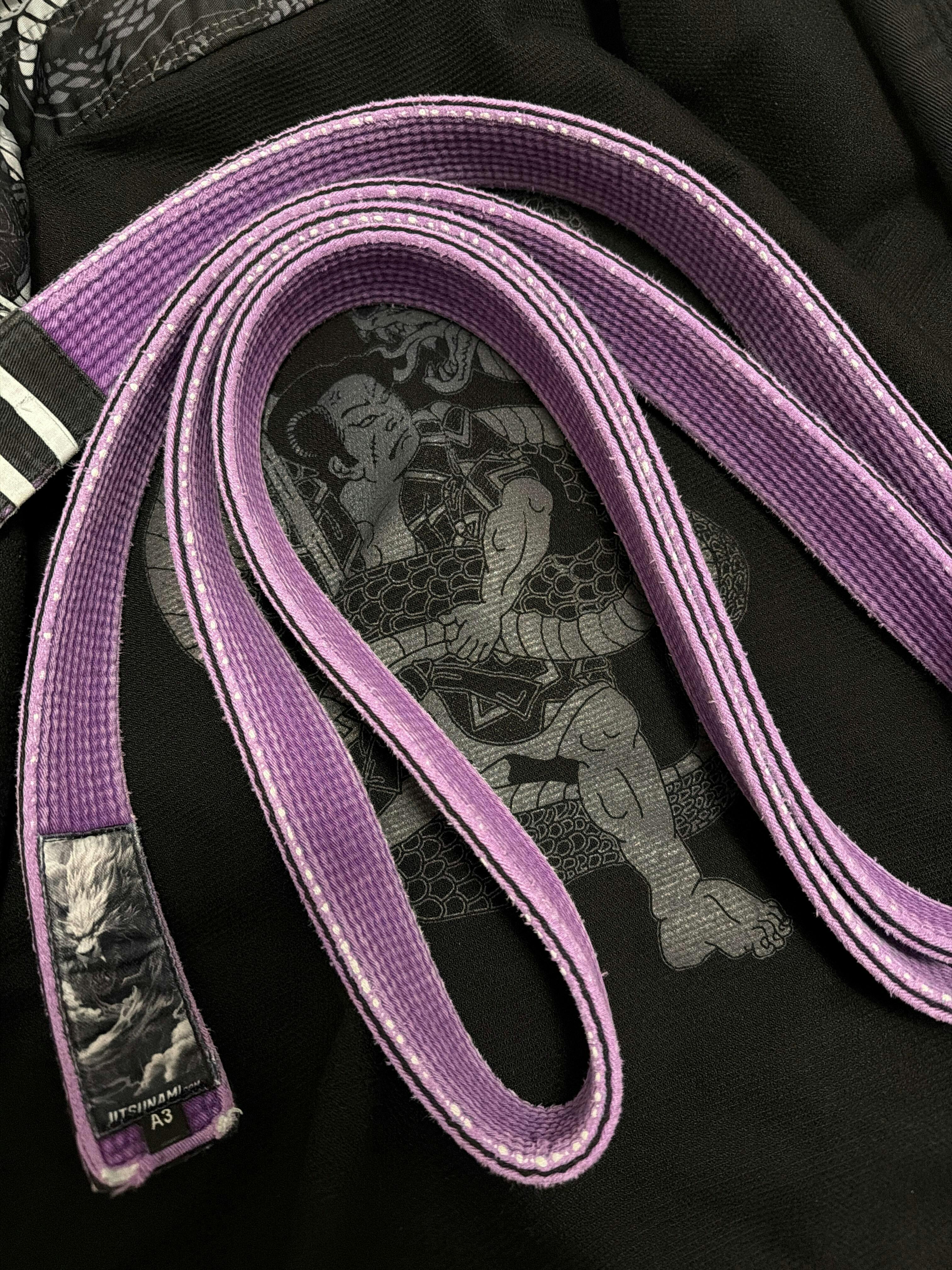 What sets our purple apart is the chic black coloured bead detailing along the edge and our distinct Raijū label illustration. Every mythological creature design comes with an inspiring tale that resonates with your ongoing jiu-jitsu journey. Dive deeper below to learn more!